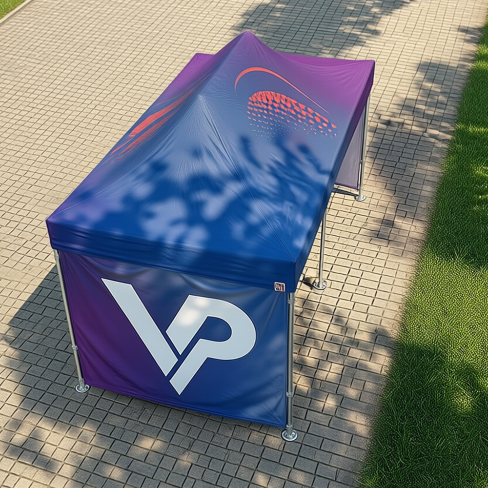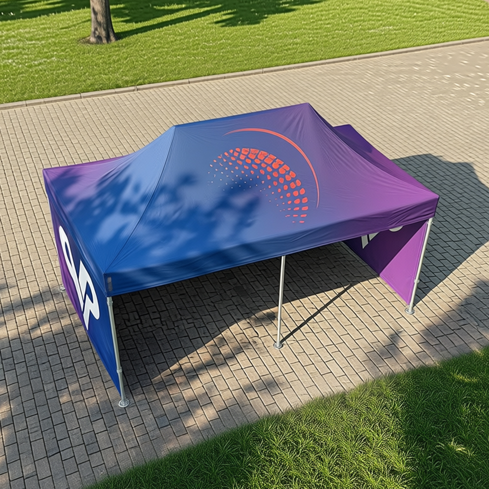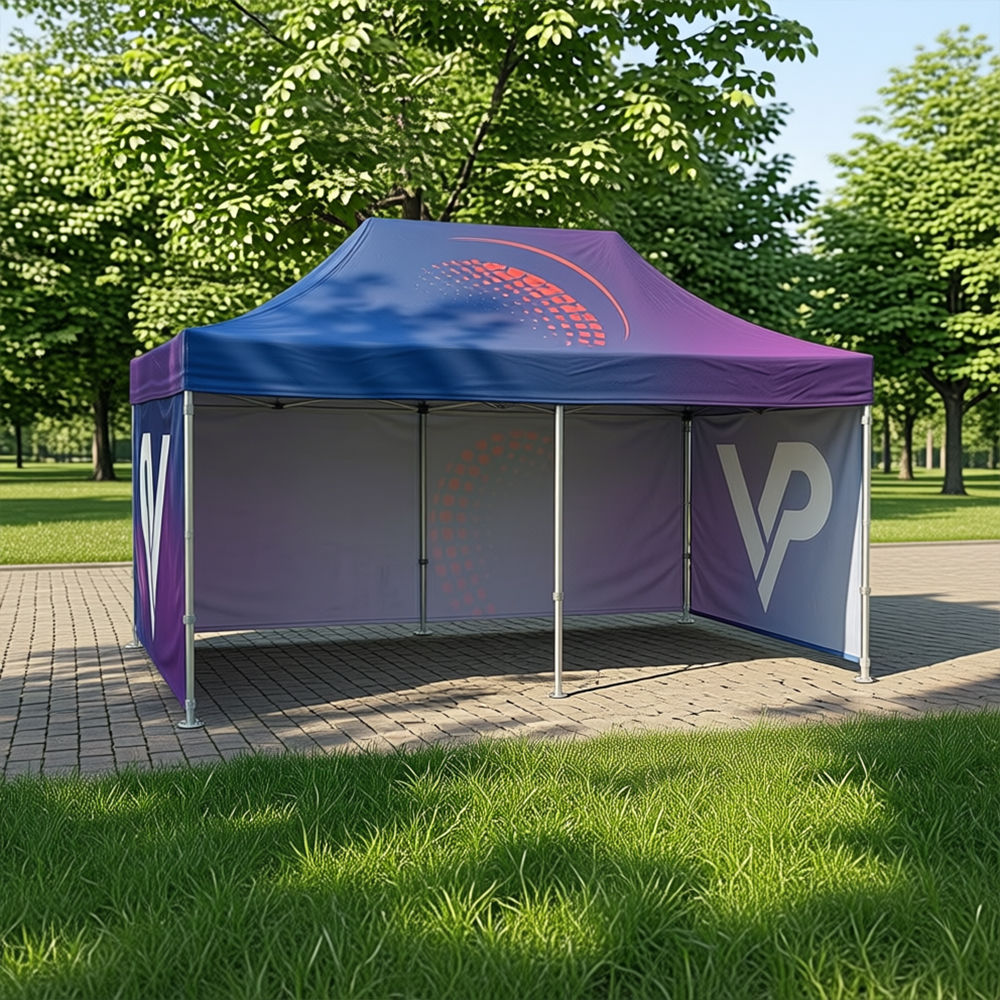 Namiot reklamowy eventowy 3×6 m z pełnokolorowym nadrukiem – szybki montaż, lekka aluminiowa konstrukcja i doskonała widoczność marki podczas targów, festynów i innych wydarzeń plenerowych.