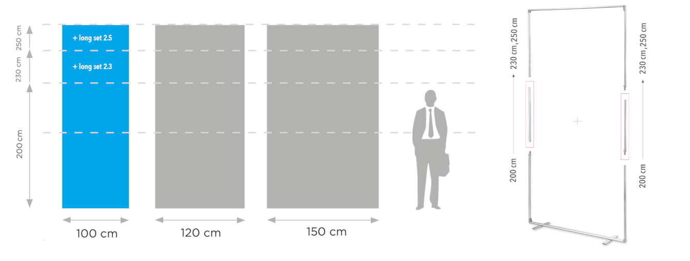 Treasure Box 2.5 (Long Set) to zaawansowany zestaw rozszerzający, który pozwala na maksymalne podwyższenie Twojej ścianki reklamowej MEGA SEG z 200 cm do poziomu 250 cm. Dzięki temu rozwiązaniu przekształcasz standardowy stand w imponującą, wysoką ściankę wystawienniczą, która dominuje w przestrzeni targowej i zapewnia bezkonkurencyjną widoczność Twojej marki.